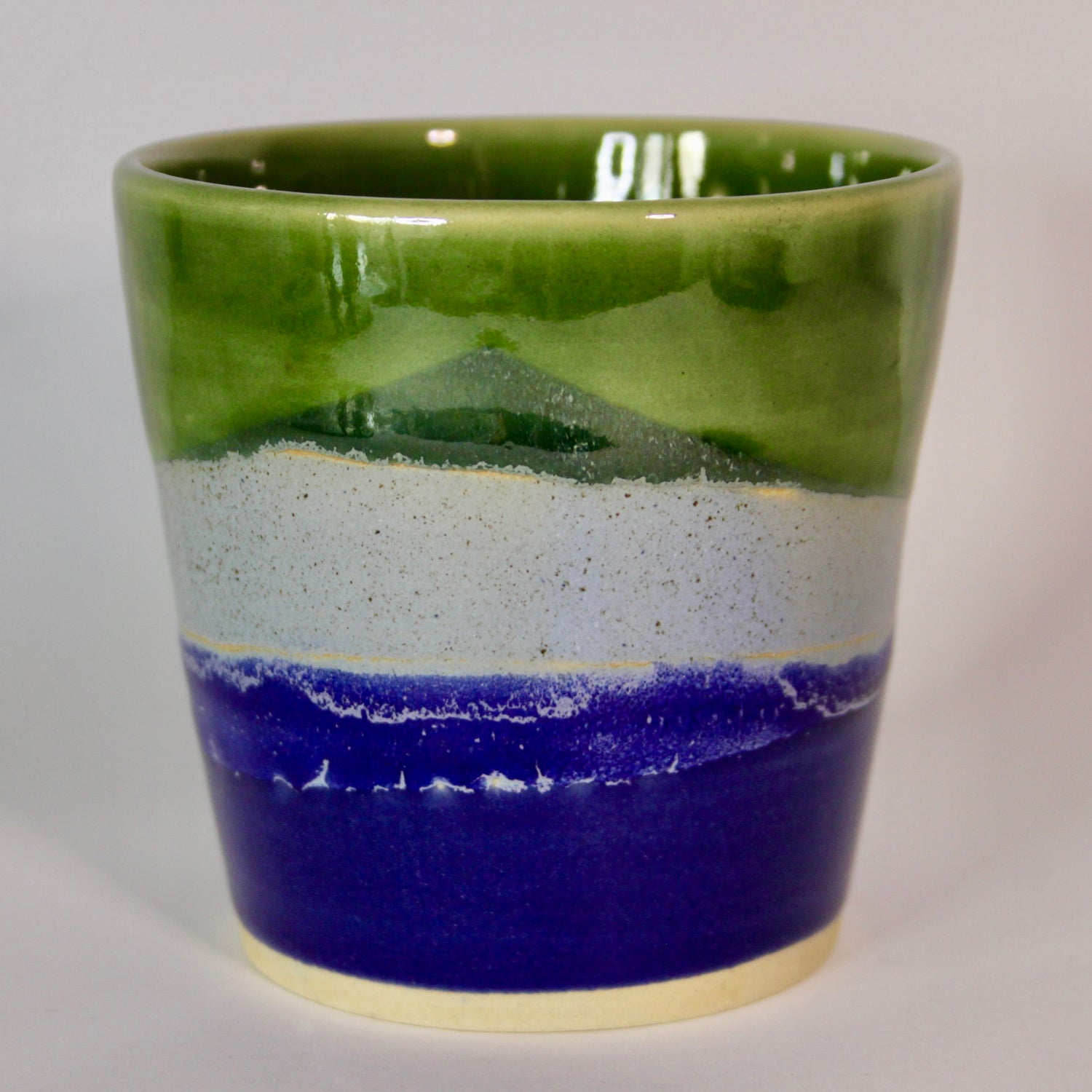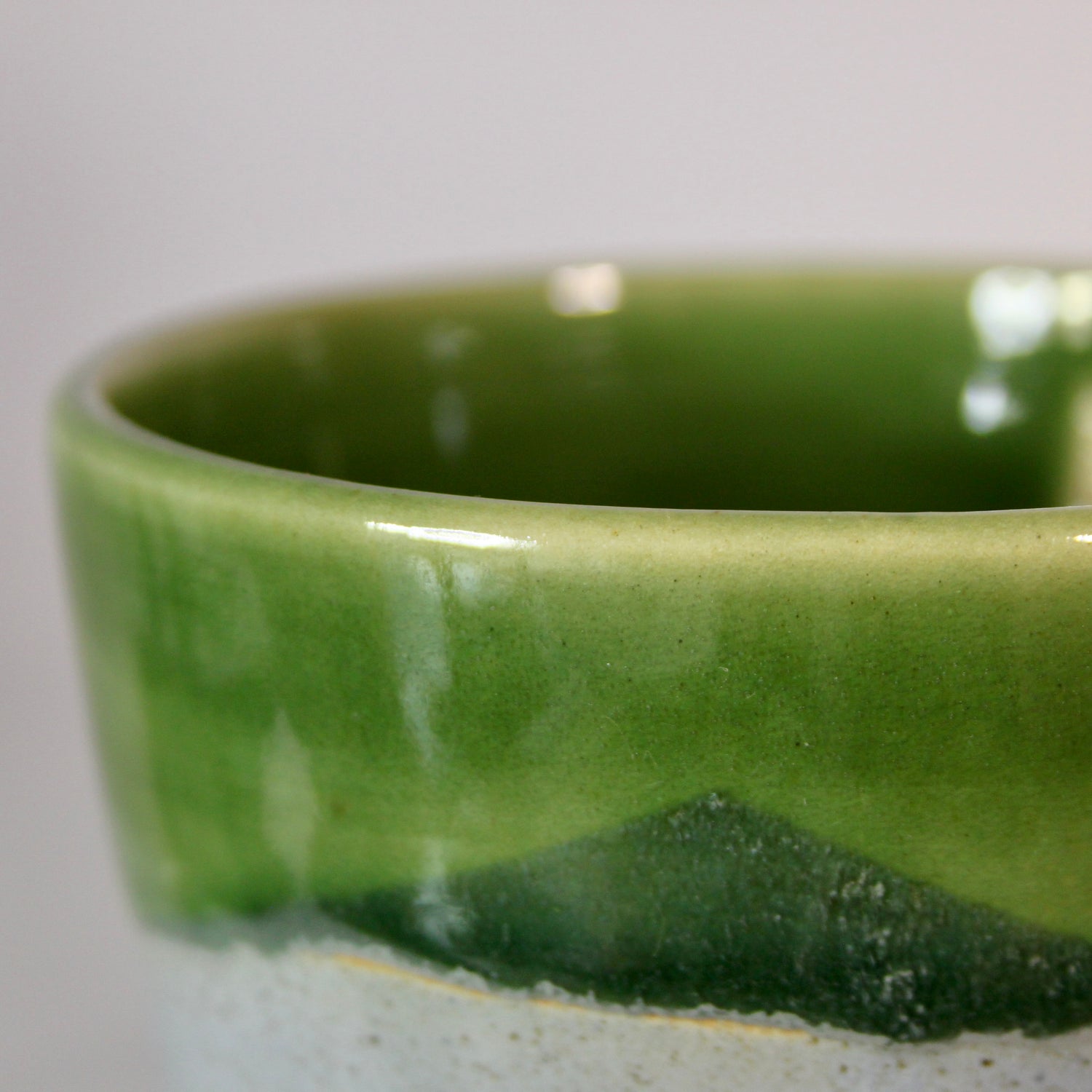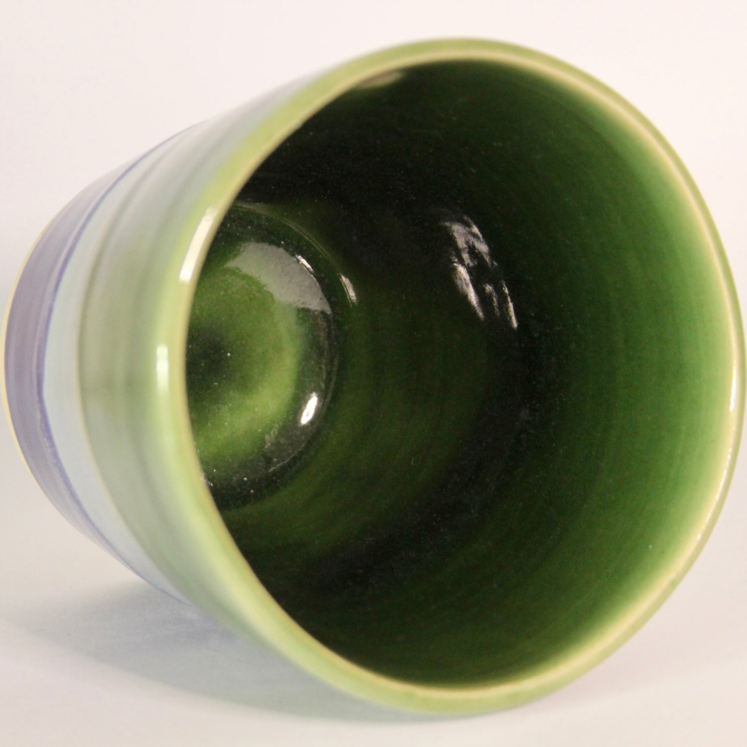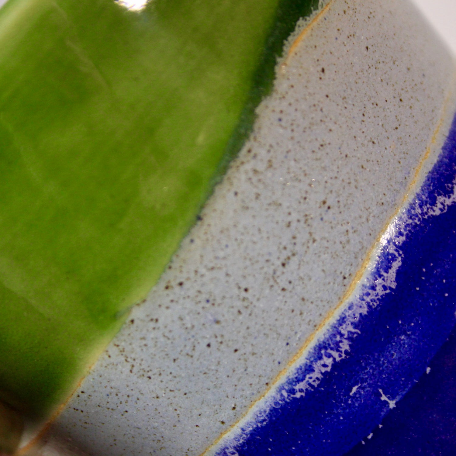Een klein formaat bloempot met 3 kleuren, groen, licht blauw en donker blauw. Deze bloempot is geschikt voor een klein plantje.