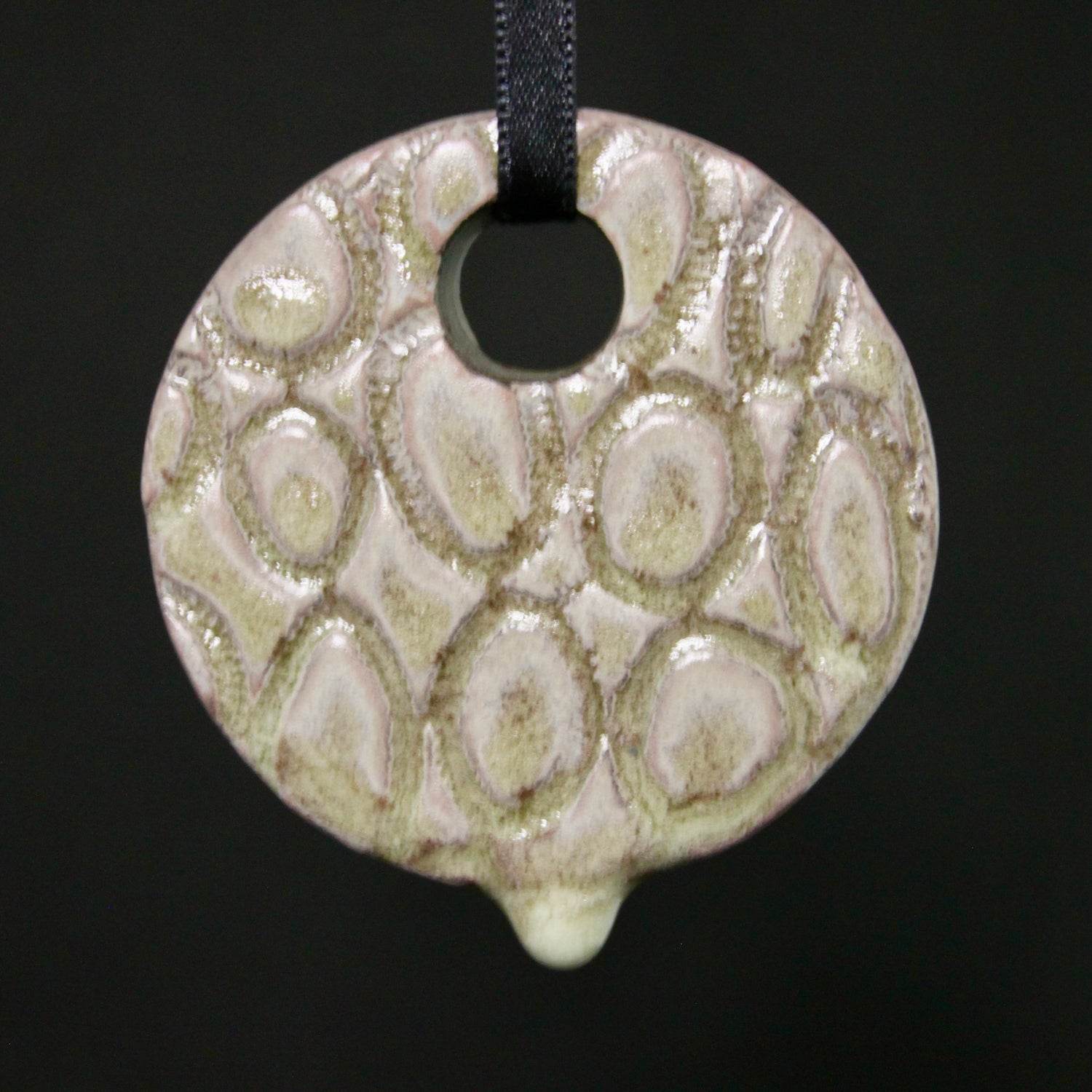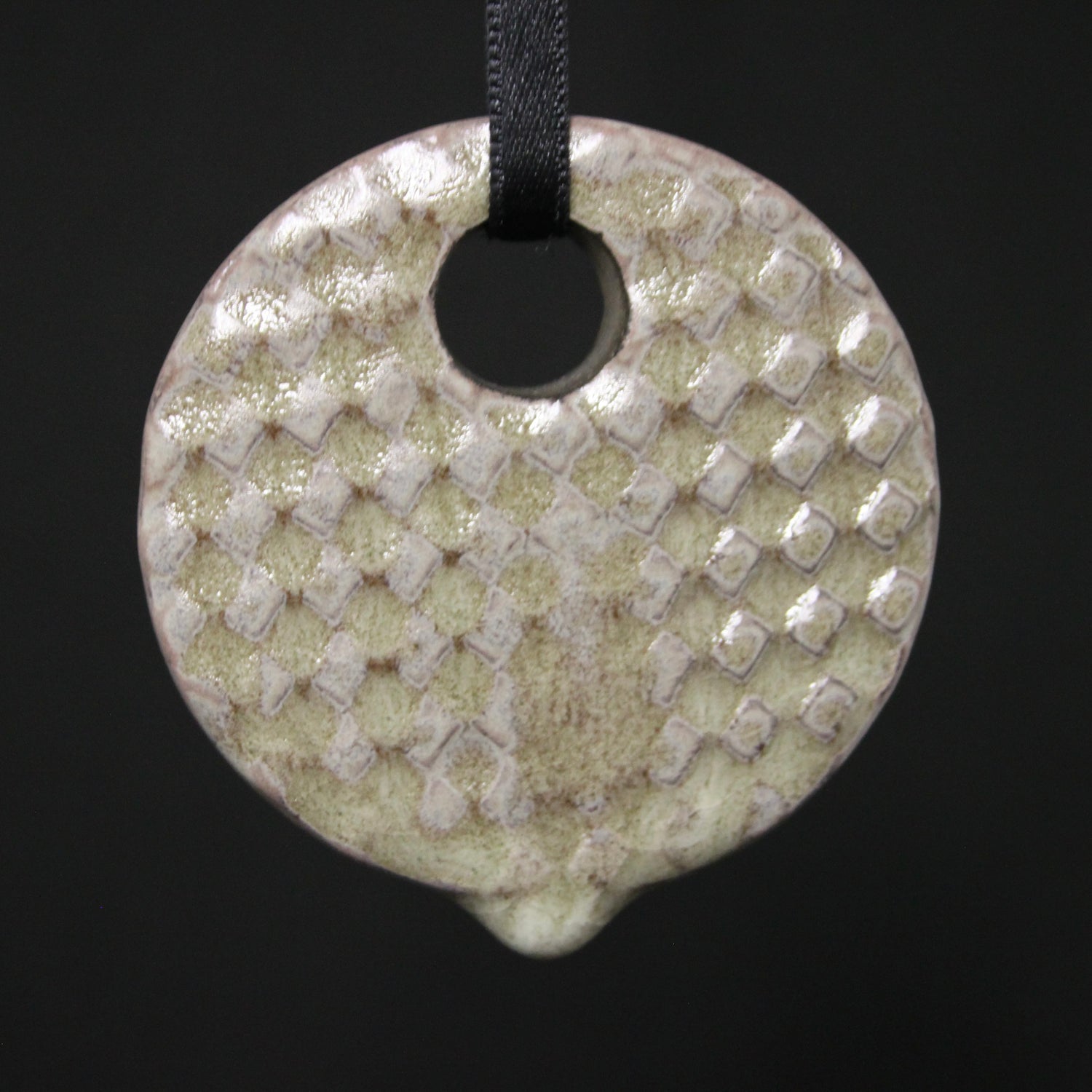 Een unieke handgemaakte kersthanger in de kleur Olijfgroen. Je kunt kiezen uit een kerstbal met een cirkelvormig patroon of een vierkant patroon.