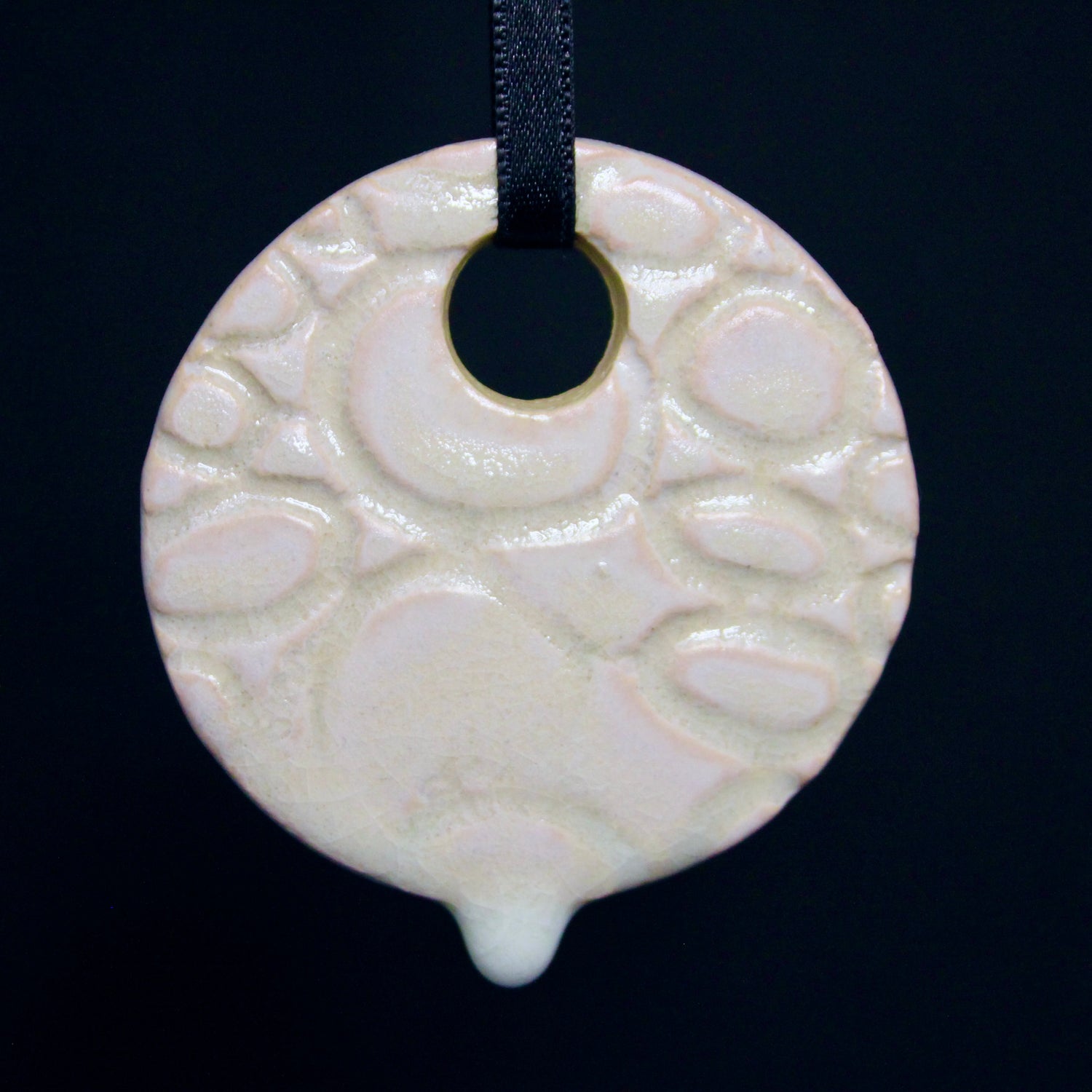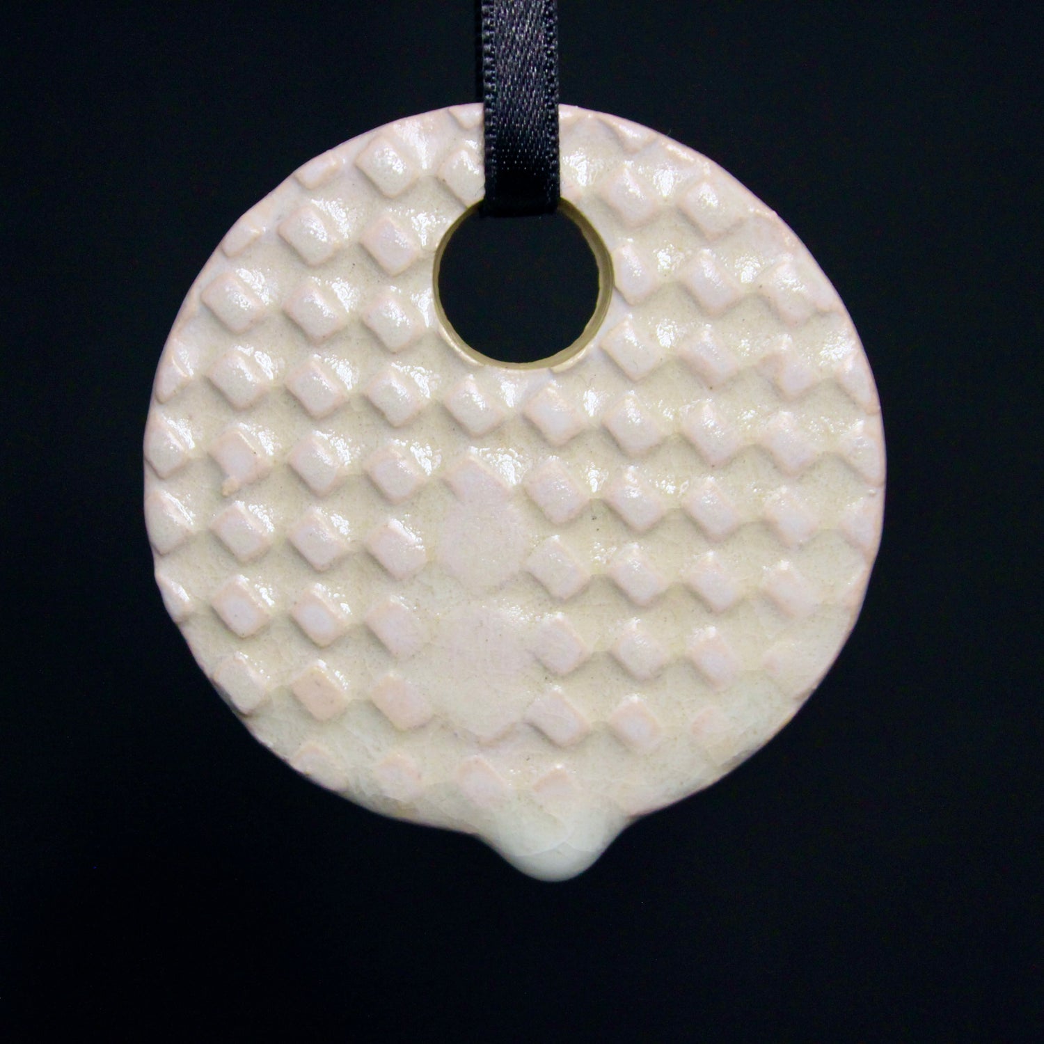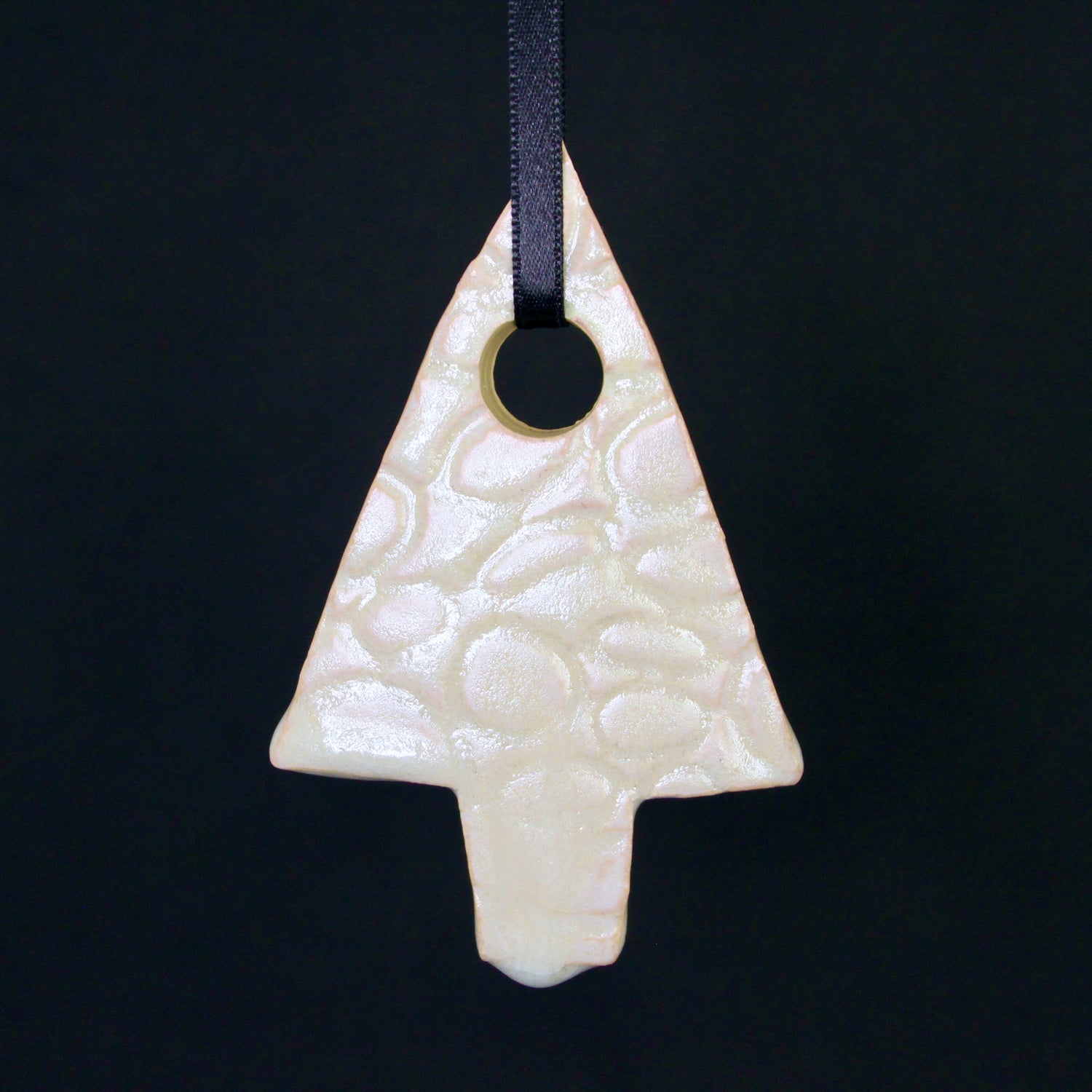 Een unieke handgemaakte kersthanger in de kleur opaal wit. Je kunt kiezen uit een kerstboom of een kerstbal met een cirkelvormig patroon of een vierkant patroon.