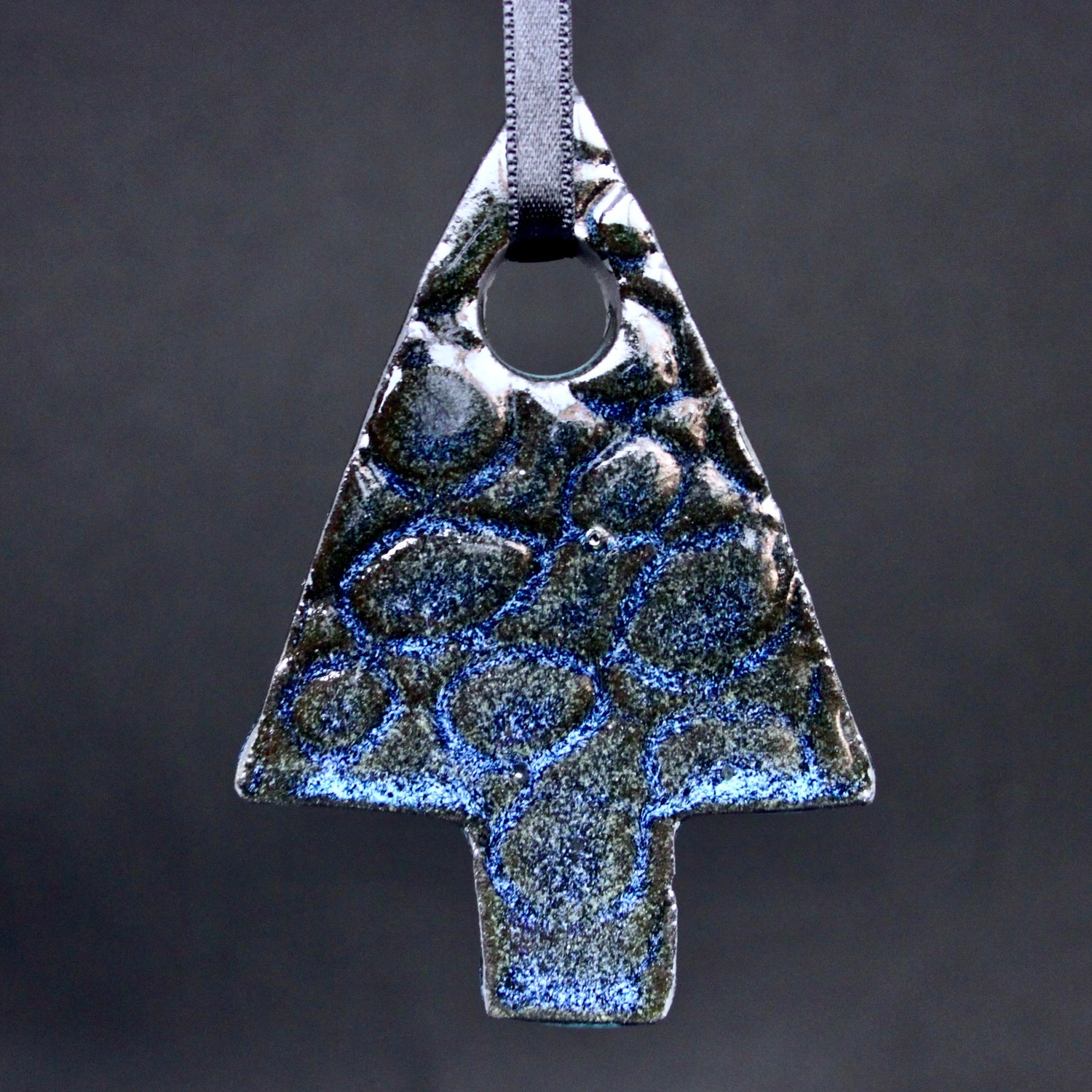 Een unieke handgemaakte kersthanger in de kleur donkerblauw met zwart. Je kunt kiezen uit een kerstboom met diverse patronen, een cirkel patroon of geen patroon. Ook kun je kiezen voor een kerstbal met een cirkelvormig patroon of een vierkantjes patroon.