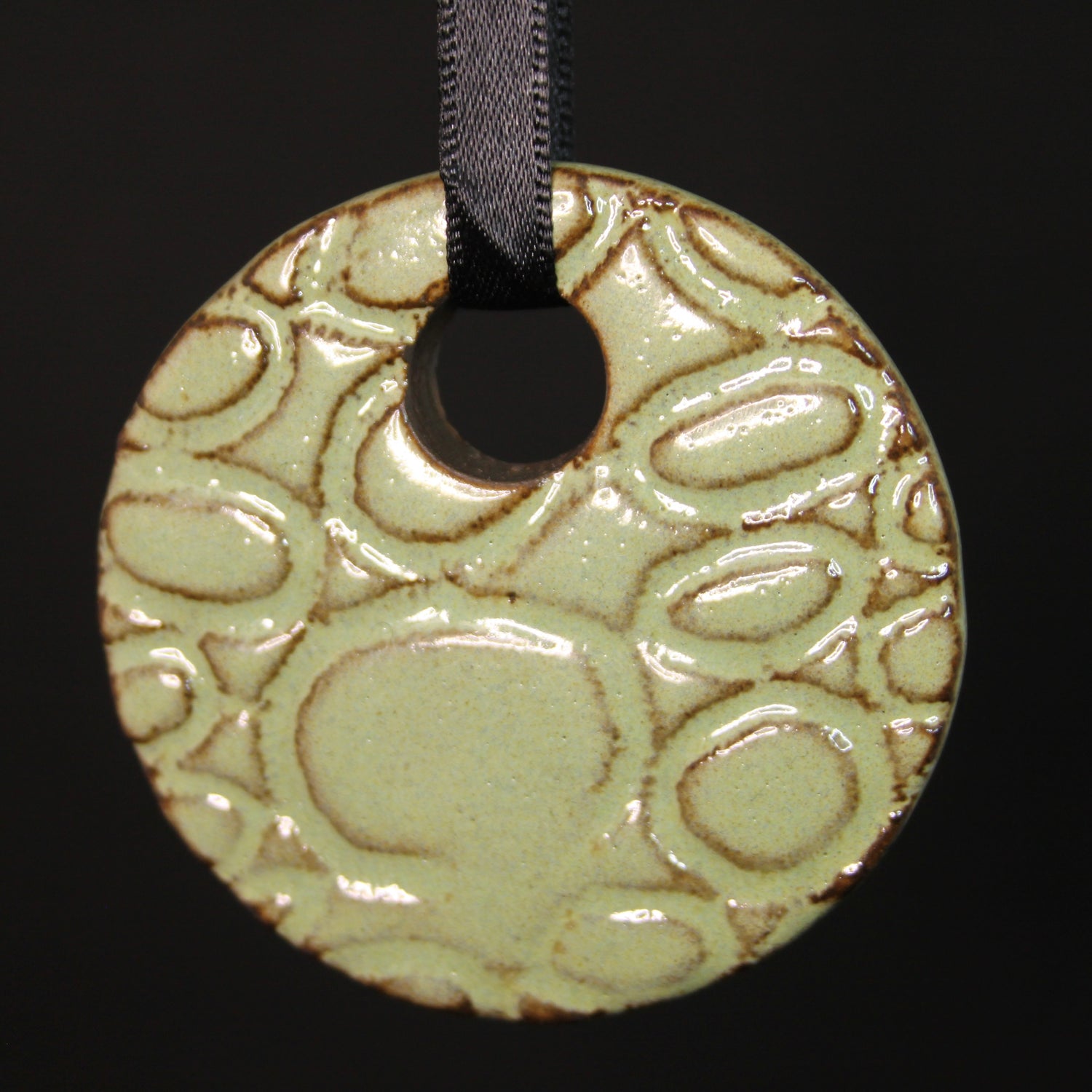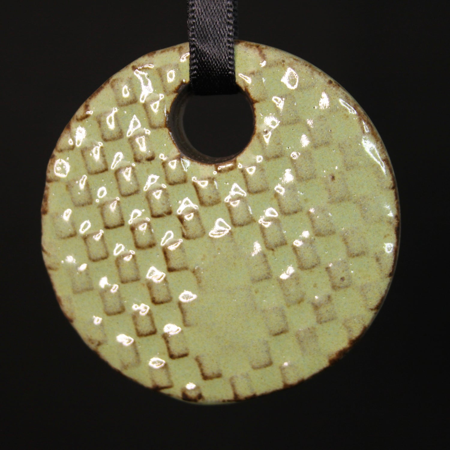 Een unieke handgemaakte kersthanger in de kleur licht groen. Je kunt kiezen uit een kerstbal met een cirkelvormig patroon, een vierkant patroon of geen patroon.