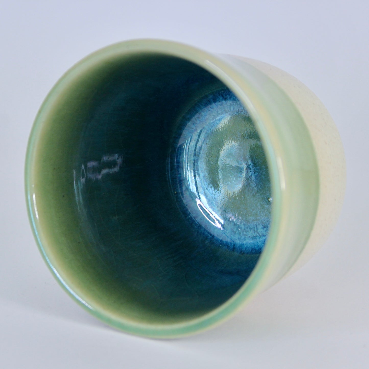 Koffiekopje zonder oor, groen/turquoise met wit spikkel