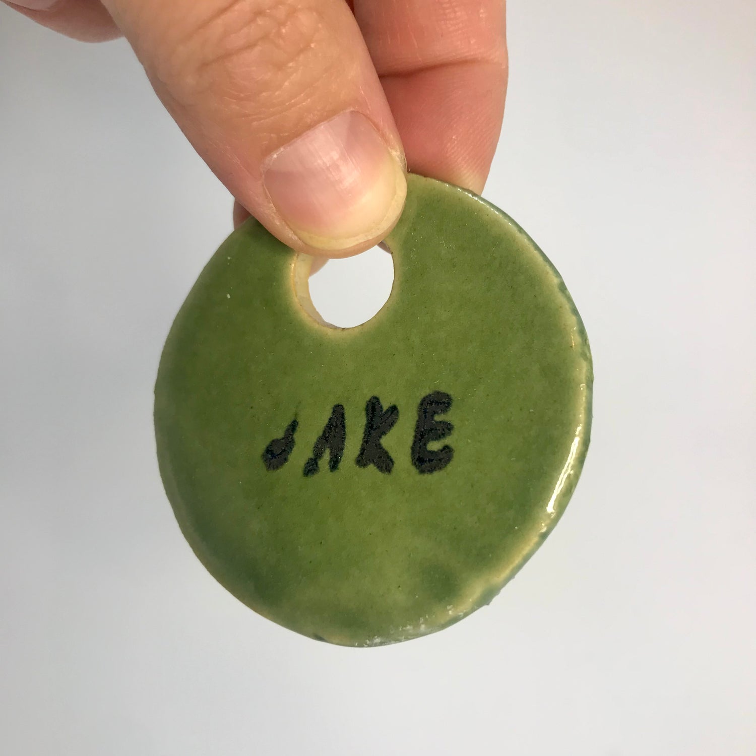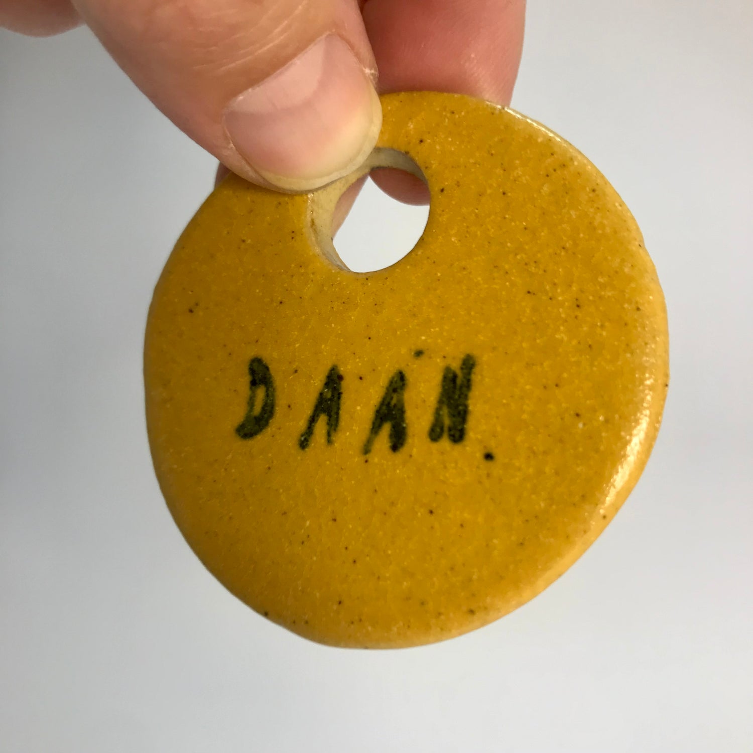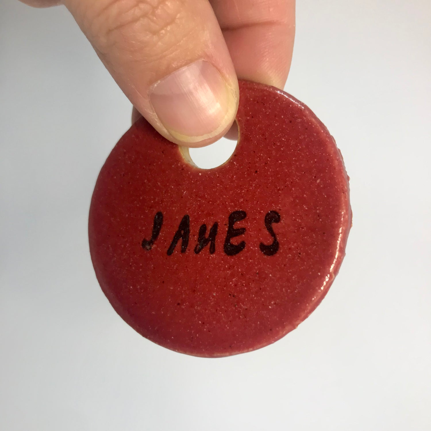 Deze kersthanger kun je persoonlijk maken door een naam toe te voegen. Leuk als cadeau voor familie of vrienden. Of voor in je eigen kerstboom. Verkrijgbaar in het wit, rood, groen of geel.