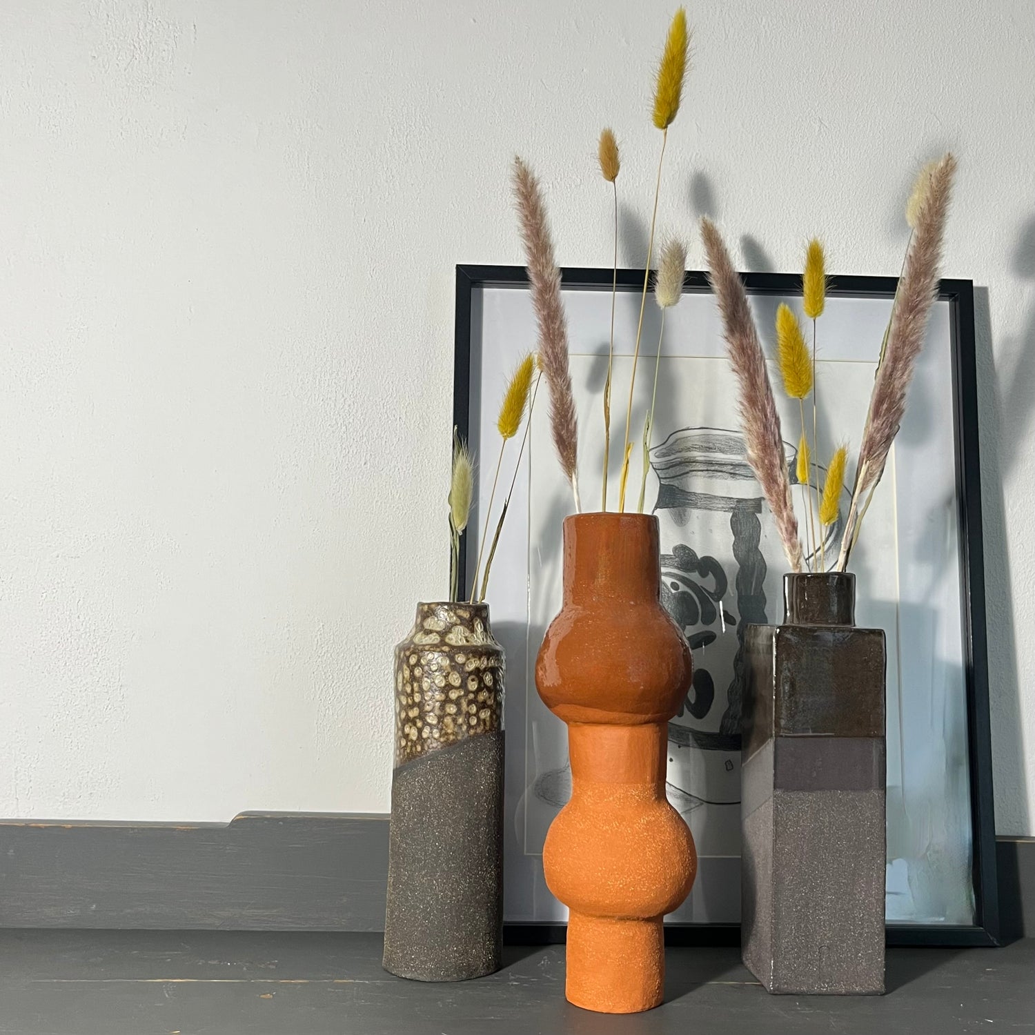 Deze handgemaakte vaas van zwarte klei is een leuke aanvulling op je interieur. De vaas is geglazuurd met transparant glazuur. De vaas is gemaakt met een grove klei dat een rauwe uitstraling geeft en laat diverse uitstralingen zien van de klei.